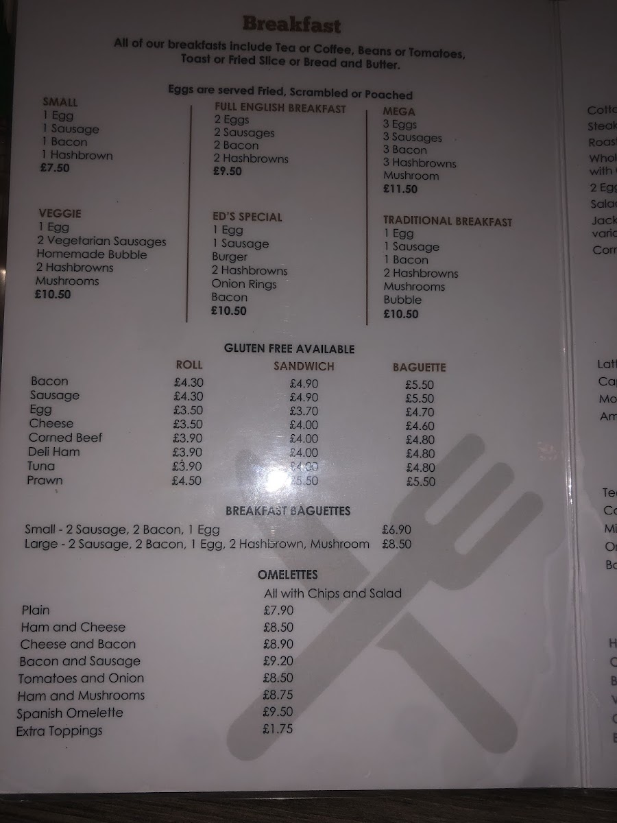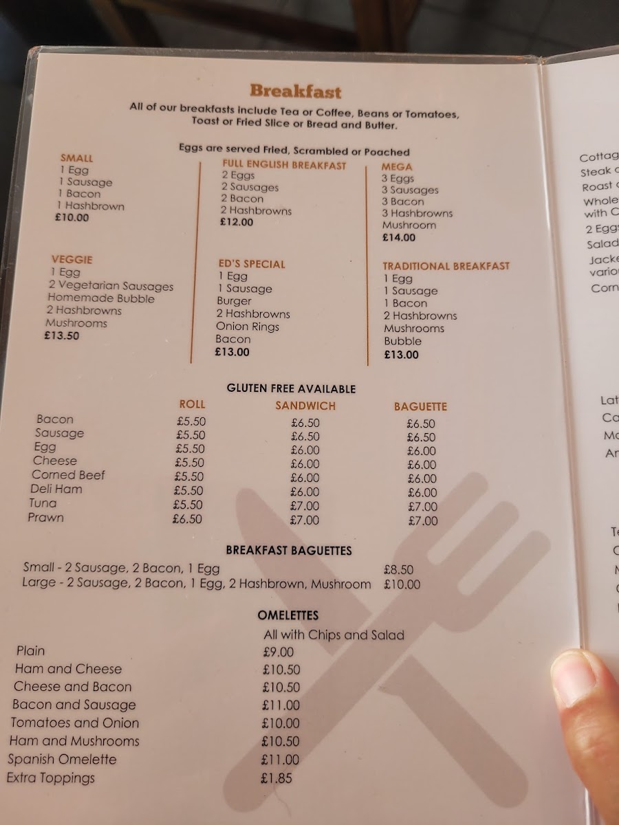 Overall, Ed’s Cafe’s menu provides a fantastic range of flavors, from classic British breakfasts to hearty meals and delicious drinks. Whether you're in the mood for something filling or just a quick bite, this cafe has something for everyone.